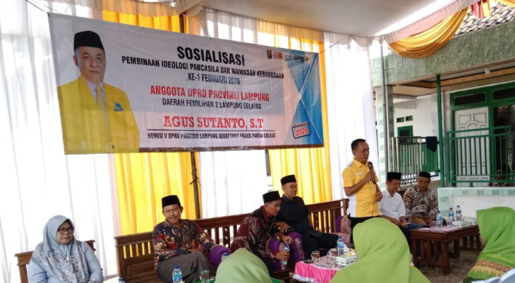 Rawnews.co.id – Anggota DPRD Provinsi Lampung dari Fraksi Partai Golkar, Agus Sutanto, menggelar kegiatan Sosialisasi Pembinaan Ideologi Pancasila (PIP) dan Wawasan Kebangsaan ke satu pada bulan Februari 2026. Kegiatan tersebut dilaksanakan pada Minggu, 8 Februari 2026, di Desa Way Gelam, Kecamatan Candipuro, Kabupaten Lampung Selatan.