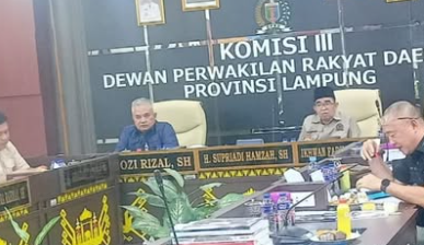 Komisi III DPRD Provinsi Lampung menekankan pentingnya peningkatan kinerja OPD pengelola pendapatan, penguatan sistem pengelolaan keuangan daerah, serta transparansi dan akuntabilitas dalam penyampaian data dan laporan keuangan. DPRD meminta agar seluruh OPD terkait menyampaikan data secara lengkap, valid, dan tepat waktu sebagai bahan evaluasi dan pengawasan legislatif.