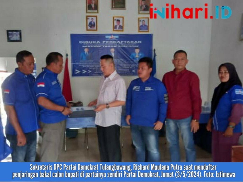 Tulangbawang, inihari.id – Bakal Calon (Balon) Bupati Tulang Bawang Richard Maulana Putra mendaftar bakal calon bupati di penjaringan Partai NasDem Kabupaten Tulang Bawang, Sabtu (04/05/2024).
