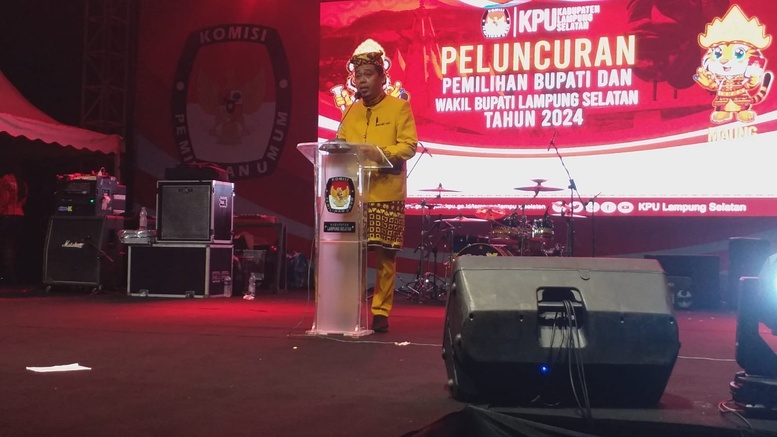 Lampung Selatan, inihari.id – Komisi Pemilihan Umum (KPU) Kabupaten Lampung Selatan menggelar peluncuran Pemilihan Kepala Daerah (Pilkada) Bupati dan Wakil Bupati Lampung Selatan Tahun 2024, di Lapangan Way Handak Expo Kalianda, Kelurahan Way Lubuk, Kecamatan Kalianda, Kabupaten Lampung Selatan (Lamsel), Jumat malam (31/5/2024).