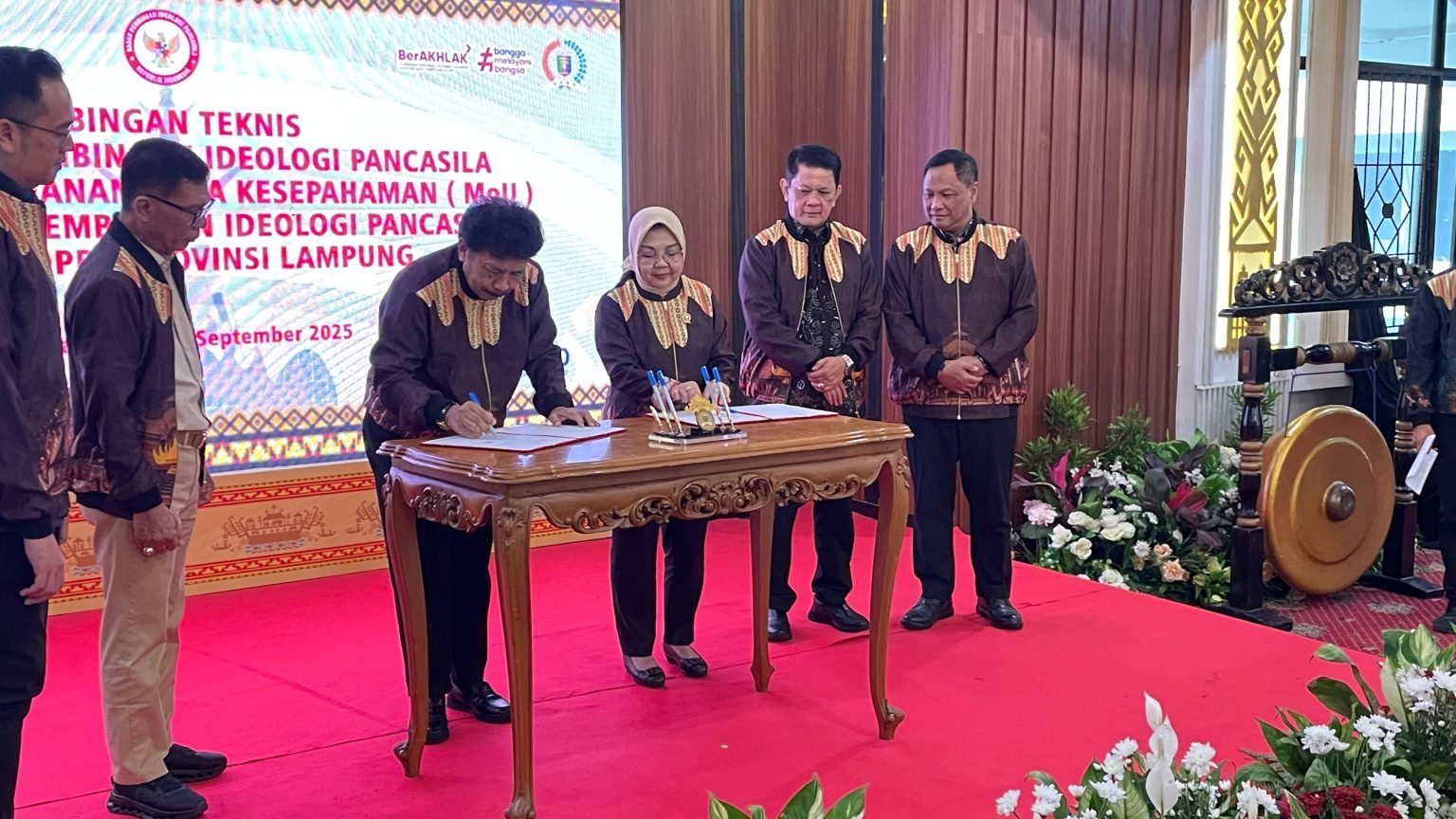 Inihari.id-Badan Pembinaan Ideologi Pancasila (BPIP) Republik Indonesia menggelar bimbingan teknis pemantapan pembinaan ideologi Pancasila sekaligus penandatanganan nota kesepahaman (MoU) dengan DPRD Provinsi Lampung. Acara berlangsung di Gedung Abung, Kompleks Pemprov Lampung, Kamis, 18 September 2025.