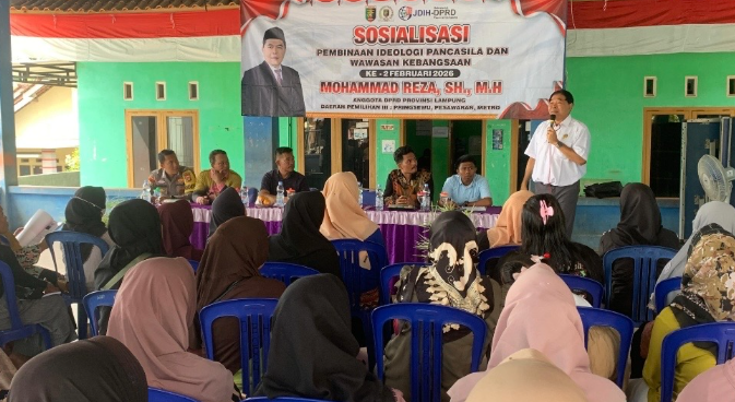Anggota DPRD Provinsi Lampung, Mohammad Reza Berawi, menggelar Sosialisasi Pembinaan Ideologi Pancasila (PIP) dan Wawasan Kebangsaan di Pekon Podosari, Kecamatan Pringsewu, Sabtu (14/2/2026).
